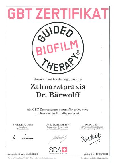 Seit Mai 2022 ist unsere Praxis offiziell GBT-zertifiziert